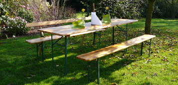 Zwei Grill's in verschiedenen Größen können genutzt werden. Sitzmöglichkeiten wie Bierzeltgarnituren stehen ebenfalls zur Verfügung. Sie sorgen lediglich für Speisen und bewirten sich selbst.